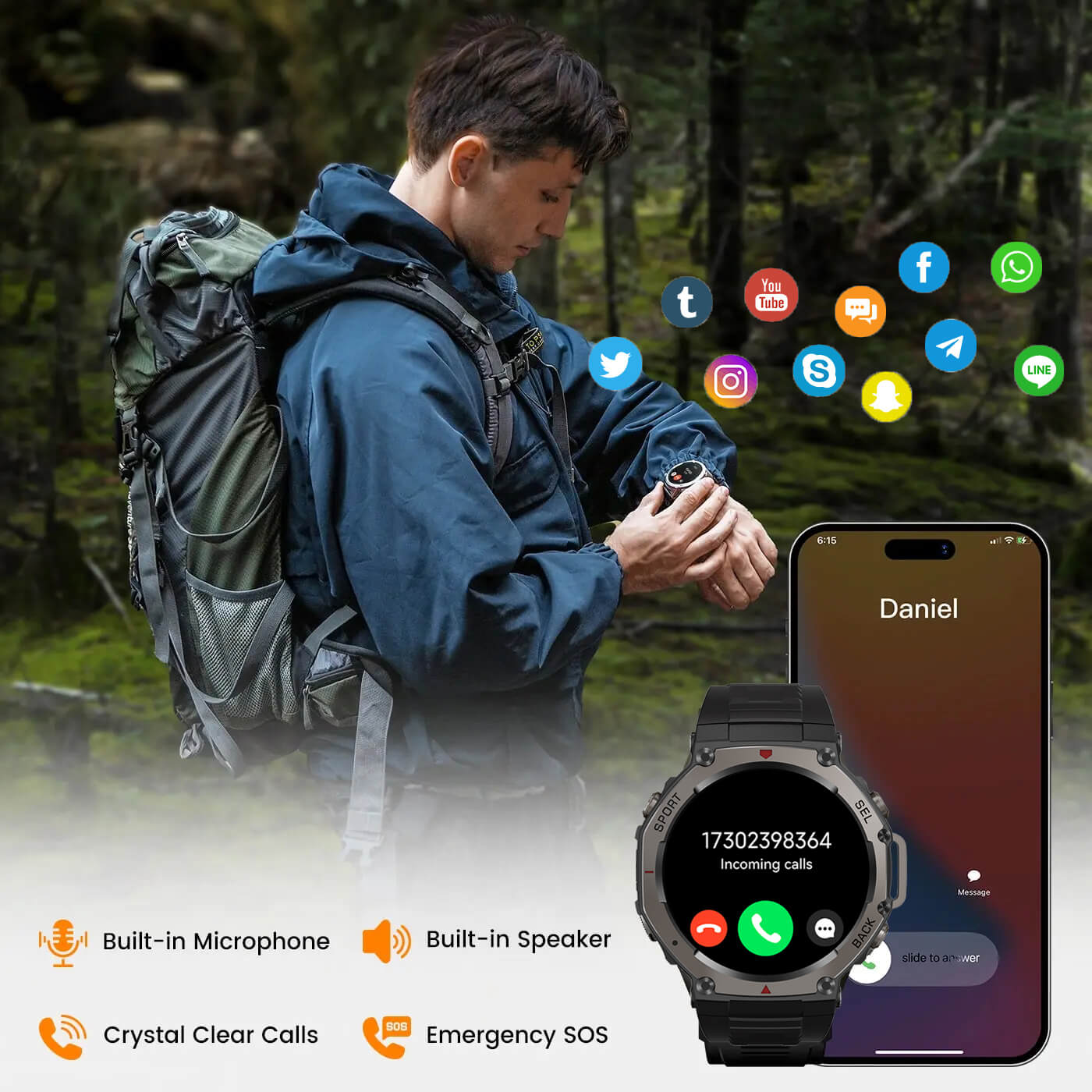 | Notification Alerts | Calls, SMS, Facebook, X, Instagram, Skype, WhatsApp, etc. |